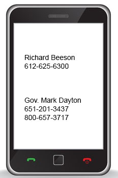 So we are asking for help. We are organizing a series of actions beginning with a call-in campaign to Governor Mark Dayton and University of Minnesota Board of Regents Chairman Richard Beeson. We are asking you to make a phone call to the offices of Dayton and Beeson and leave a message asking for action. Here are phone numbers (and if you need it, a suggested script for your call.)