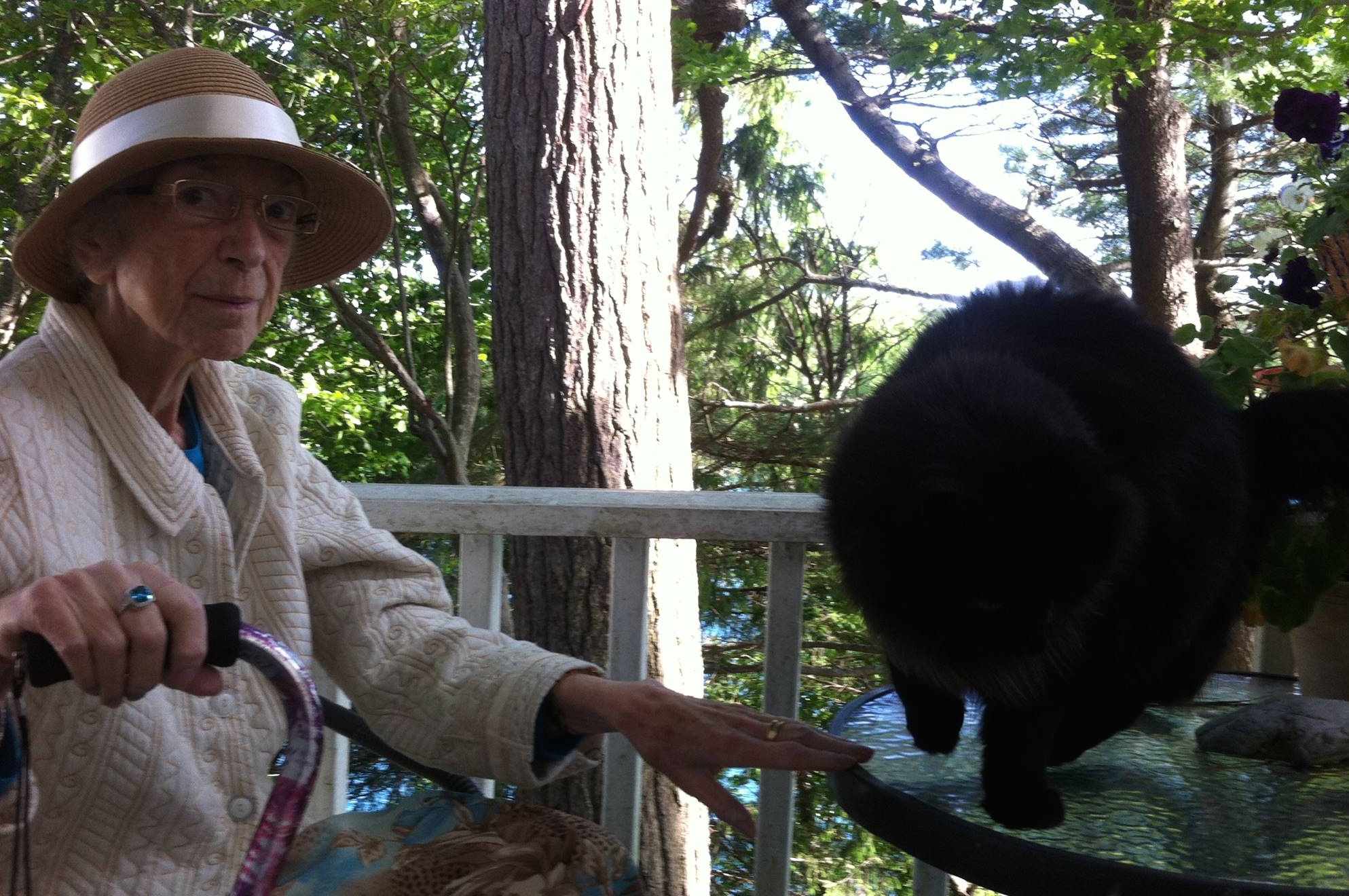 Dr. Jenifer Meynell (my mum) a couple of weeks before she died, sitting on our deck before one of her last outings.