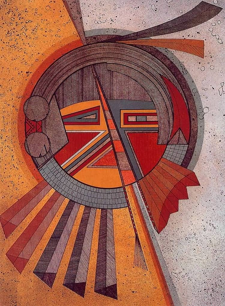 Photo Credit: @KBeHereNow. Image Description: “Medicine Woman” (lithograph, 1981-84) by Helen Hardin.