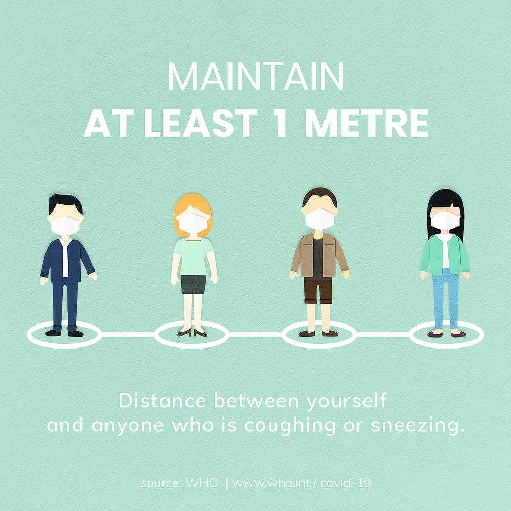 Photo Courtesy: rawpixel. Image Description: Maintain at least 1 metre in public during coronavirus pandemic, a paper craft social template by WHO.